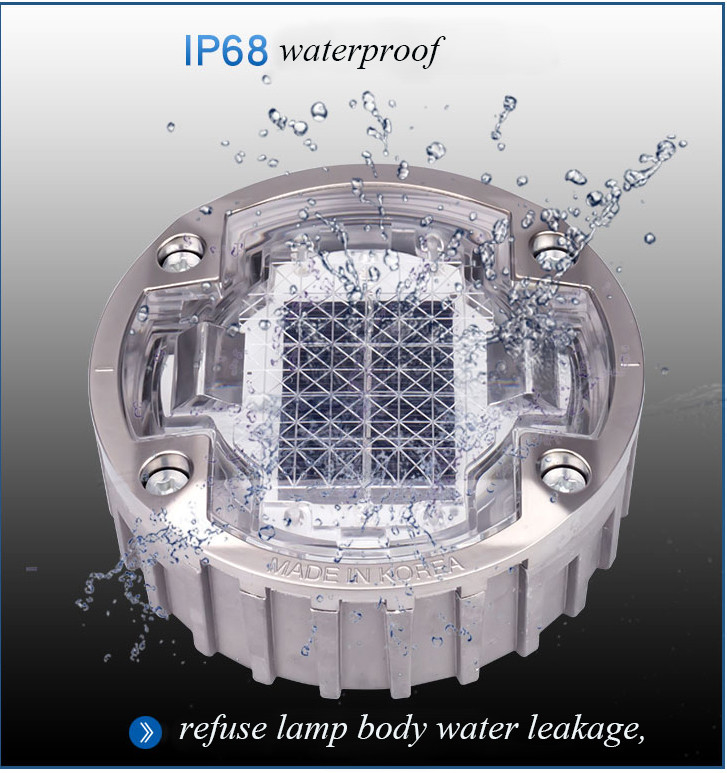 सौर एलईडी रोड स्टड एल्यूमीनियम मिश्र धातु से बने होते हैं, जो जंग और जंग के प्रति अत्यधिक प्रतिरोधी होता है। यह विशेषता उन्हें तटीय क्षेत्रों या उच्च आर्द्रता वाले क्षेत्रों में उपयोग के लिए आदर्श बनाती है।अतिरिक्त, स्टॉप्स में IP68 का जलरोधक स्तर है, जिसका अर्थ है कि वे बिना क्षतिग्रस्त हुए भारी बारिश और यहां तक कि पानी में डूबने का सामना कर सकते हैं।