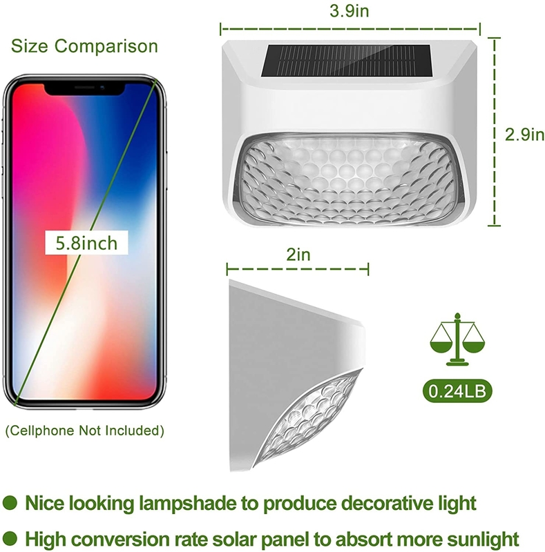 एलईडी रोशनी ऊर्जा कुशल और लंबे समय तक चलने वाली है, यह सुनिश्चित करने के लिए कि आप आने वाले कई वर्षों तक अपने बगीचे की रोशनी की गर्म चमक का आनंद ले सकते हैं।7V/500MAH और केवल 4-6 घंटे में चार्जप्रकाश टिकाऊ एबीएस+पीसी सामग्री से बने हैं, जो उन्हें मौसम प्रतिरोधी और सभी मौसमों में उपयोग के लिए उपयुक्त बनाते हैं।