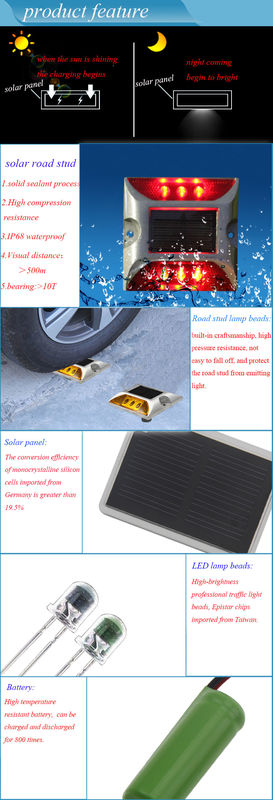 सोलर रोड स्टड पारंपरिक रोड रिफ्लेक्टर का एक उत्कृष्ट विकल्प है। वे सौर ऊर्जा से संचालित होते हैं, जिसका अर्थ है कि वे पर्यावरण के अनुकूल और लागत प्रभावी हैं।इन्हें लगाना आसान है और कम से कम रखरखाव की आवश्यकता होती है. ये सौर ऊर्जा संचालित रोड स्टड राजमार्गों, पार्किंग स्थल, ड्राइववे और अन्य सड़क मार्गों के लिए एकदम सही हैं। वे दिन और रात के दौरान ड्राइवरों को स्पष्ट दृश्यता प्रदान करते हैं,सड़कों पर चलना आसान बनाता है.