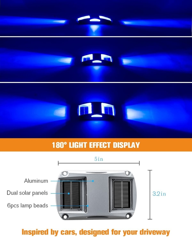 सौर रोड स्टड उच्च गुणवत्ता वाली सामग्री से बने होते हैं, जिसमें एल्यूमीनियम मिश्र धातु और पीसी शामिल हैं, जो उन्हें टिकाऊ और लंबे समय तक चलने वाले बनाते हैं। उनका वजन 150 ग्राम और आकार 130*80*22 सेमी है।सौर रोड स्टड पांच अलग-अलग रंगों में उपलब्ध हैं: सफेद, पीले, लाल, नीले और हरे रंग के। यह उन्हें सड़क की स्थिति के अनुरूप अनुकूलित करने और दृश्यता में सुधार करने की अनुमति देता है।